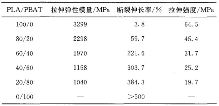 PLA與PBAT有著互補的性能,因此必然存在綜合性能最好的質量比。