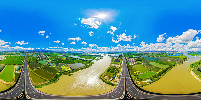 將生成的全景圖導入PS,利用修補工具、仿制圖章等功能修復地面和天空穿幫,修復后即可上傳至全景網站。