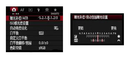 曝光補償/AEB參考數值: