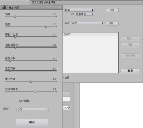 第六步,“自定義設置”調為“融合/自然”模式,點擊“設置”,調試“強度、亮度等數值”以增強合成后圖片的畫面色彩飽和度,設置參考如下圖: