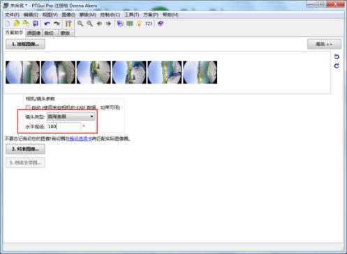 將“鏡頭類型”調整為:圓周魚眼,水平視場:180°,如下圖操作: