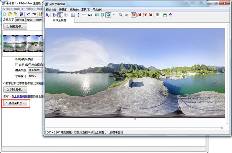 對準圖像后點擊“創建全景圖”,如下圖操作:
