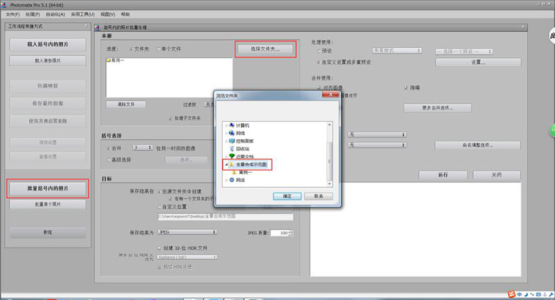 第四步,打開軟件“Photomatix”,導入拍攝好的照片,點擊“批量括號內的照片”,選擇我們拍攝好的魚眼圖文件夾,如下圖操作: