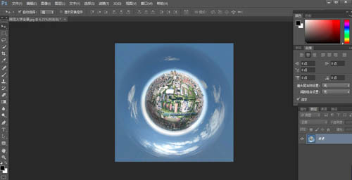 第一步:用ps打開你拍攝好的全景圖片,改變圖像大小,使其成為正方形。