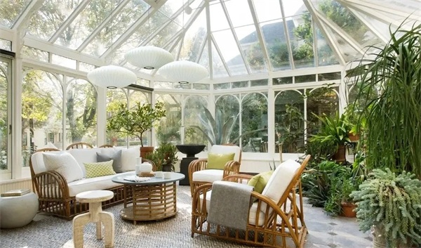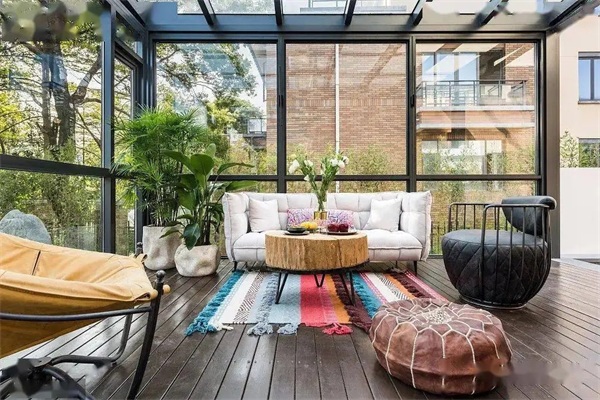 這種漂亮的陽光房采用了更加靈活的滑動門組合,首先我們分別安裝在陽光房的兩側玻璃門里,經過滑動程度將室內和室外的空間聯連動起來,關閉的時由于兩扇門都是玻璃材質因此也能保持較好的采光效果,顏值采光兩不誤!