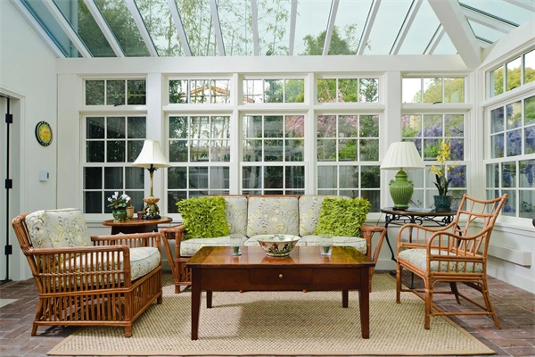 如果你家的陽光房空間并不大的不妨可以嘗試一下轉角安裝兩扇推拉門,這樣就能達到拓展與外部連接的效果,同樣無邊框設計和轉角處設計一個簡單的立柱效果也是很可以的哦。陽光房的門其實設計也需要很花心思,這樣才更美!陽光房十大品牌,認準成都陽光房。