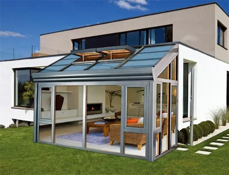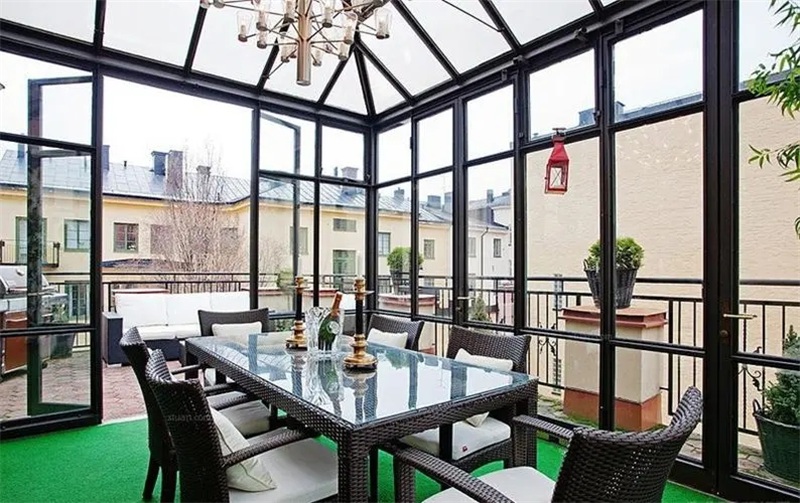 2、陽光房是裝配式結(jié)構(gòu),同時(shí)能夠自由開啟和關(guān)閉所以對(duì)于夏季與冬季來說都能完美解決了冬涼夏熱的尷尬情景。
