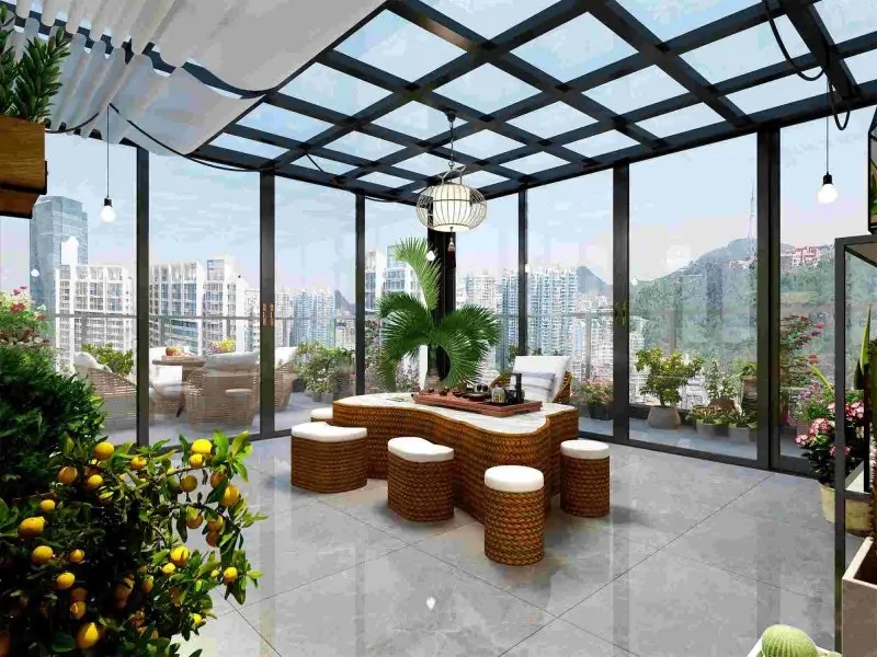 陽光房功能確實是很多,但是也并非全部功能都需要,必須玻璃方面有些人只需要單層玻璃就足夠了有些則要雙層的,這個是看個人、環境和經濟而言的。如果只是想做一個簡單的移動陽光房,平時養花、晾衣服、休閑用的話單層鋼化夾膠玻璃已經足夠了。但如果你是想打造成高端一點的會客中心的話那無疑就要選擇雙層鋼化隔音玻璃了。