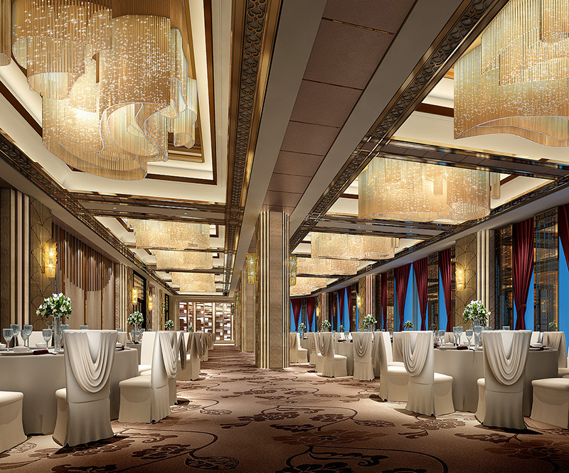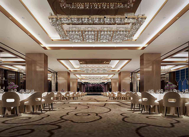 宴會廳燈光裝飾設計:由于宴會廳是一個大型聚會場所,通常配有舞臺,所以相應的燈光裝飾設計比較復雜。對于舞臺區域,可以設置舞臺搖頭燈,LED RAR燈和追光燈。一般照度為105-750。照明方法應體現多樣性,并適應調光器和分流開關以滿足不同功能的需求。大廳裝飾有裝飾燈,可以用天花板燈和壁燈裝飾。由于宴會廳的特殊功能,補充僅限用餐,以及會議和慶典,因此經過翻修的宴會廳的燈光可能會稍微更亮。一般來說,不同主題的宴會廳的裝修設計對氣氛有不同的要求。宴會廳氣氛中有許多裝修元素。這些裝修設計元素直接影響宴會廳對顧客的吸引力。