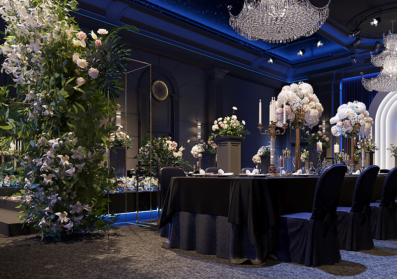會場大廳的裝修設計會帶給賓客強烈的氛圍感受,過高的天頂適合那些人數較多,場面較大的婚禮。較低的天頂只適合那些人數較少、溫馨的小型婚禮。