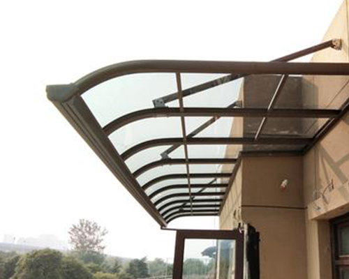 玻璃雨棚,以鋼結構框架為主要結構,選用優質Q235材質的系列鋼管等制作而成的防雨棚帳。鋼結構是通過冷彎成型的彎圓設備彎制的;
