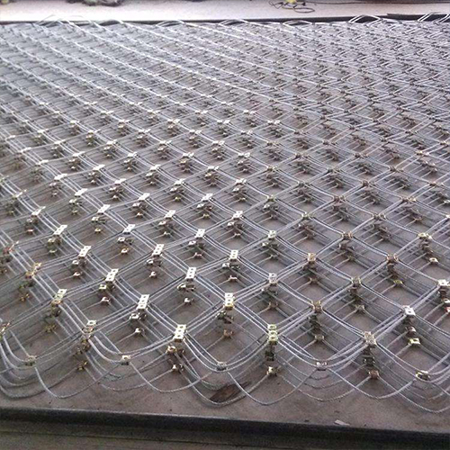 主動防護網是鋼絲繩柔性網覆蓋包裹在所需防護斜坡或巖石上,