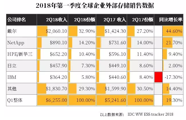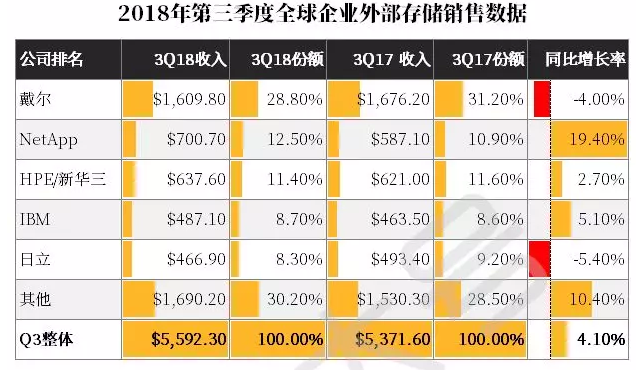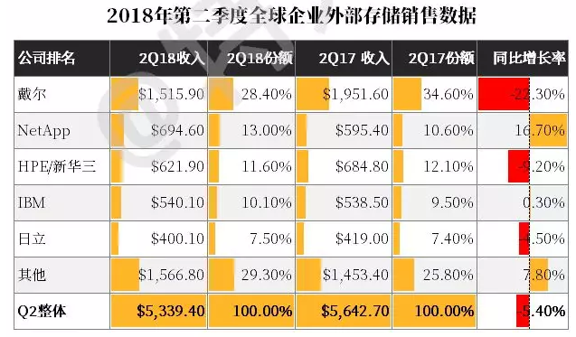 戴爾第一,NetApp第二,HPE第三