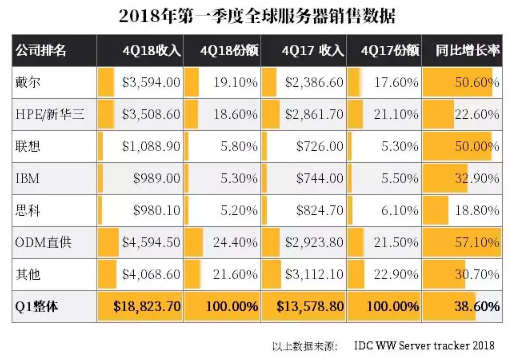 戴爾與HPE/新華三排名比較穩定