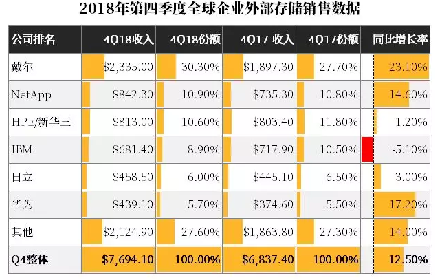 2018全球企業存儲銷量數據