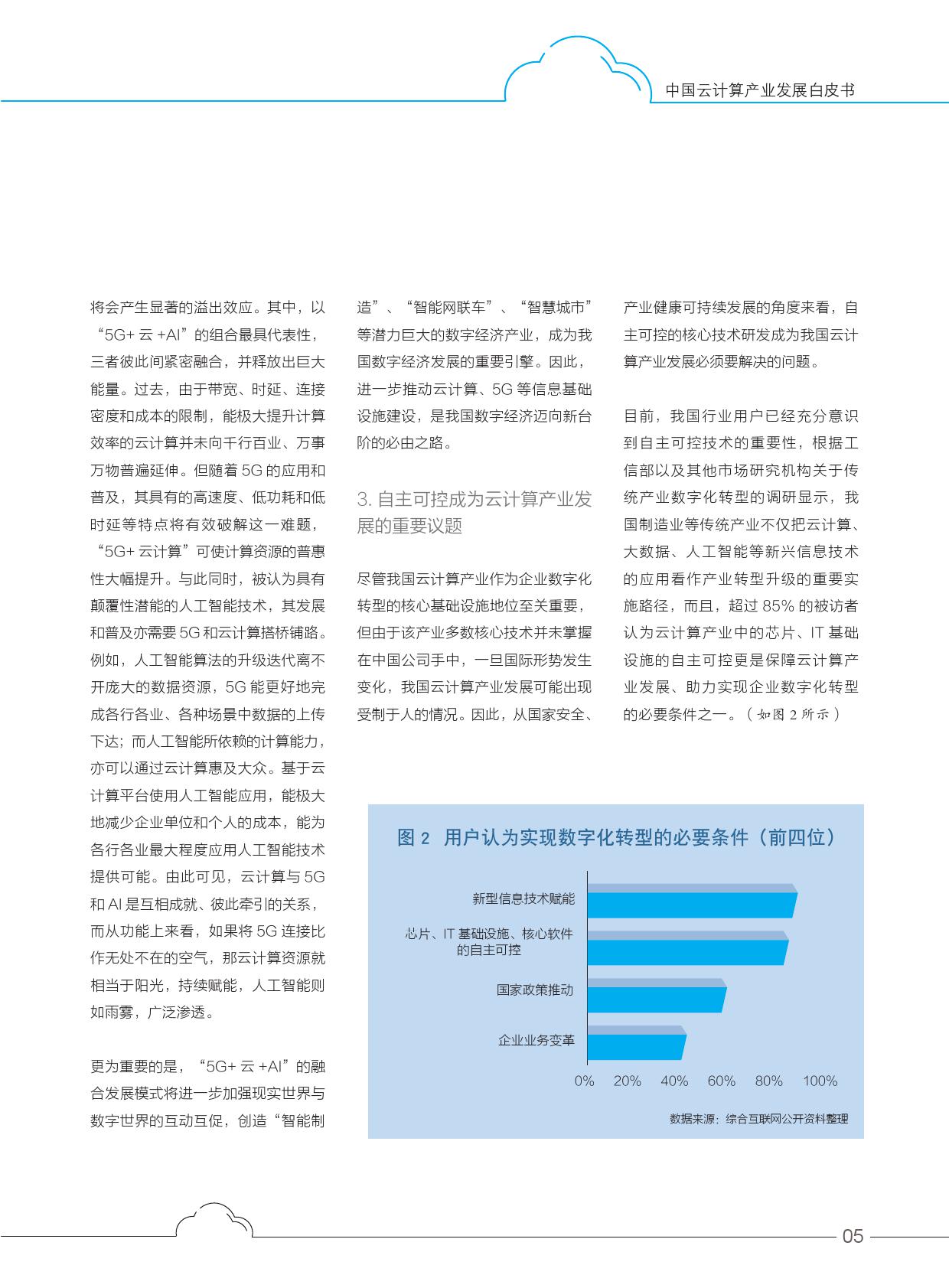 新型技術賦能等成為數字化轉型的必要條件。云計算產業作為企業數字化轉型的核心基礎設施地位至關重要,從國家安全、產業健康可持續發展的角度來看,云計算產業中的芯片、IT基礎設施等環節的自主可控是保障云計算產業發展、助力實現企業數字化轉型的必要條件之一。
