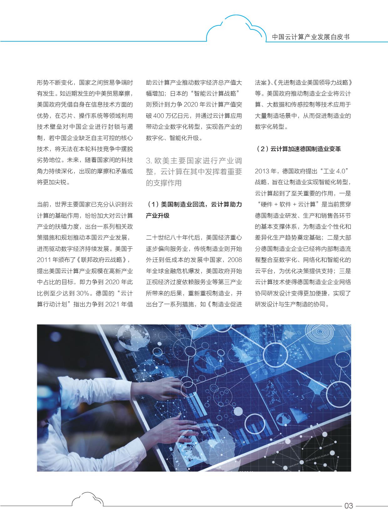在歐盟,以德國為例,在德國制造業轉型升級的過程中,云計算起到了至關重要的作用,賦能新型制造系統改變既有生產方式,大幅提升了德國制造業的生產效率,從而帶動德國制造業價值鏈升級。