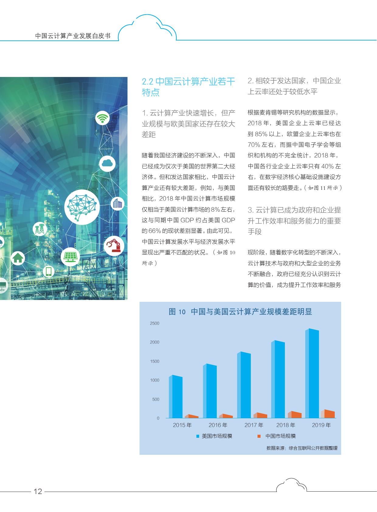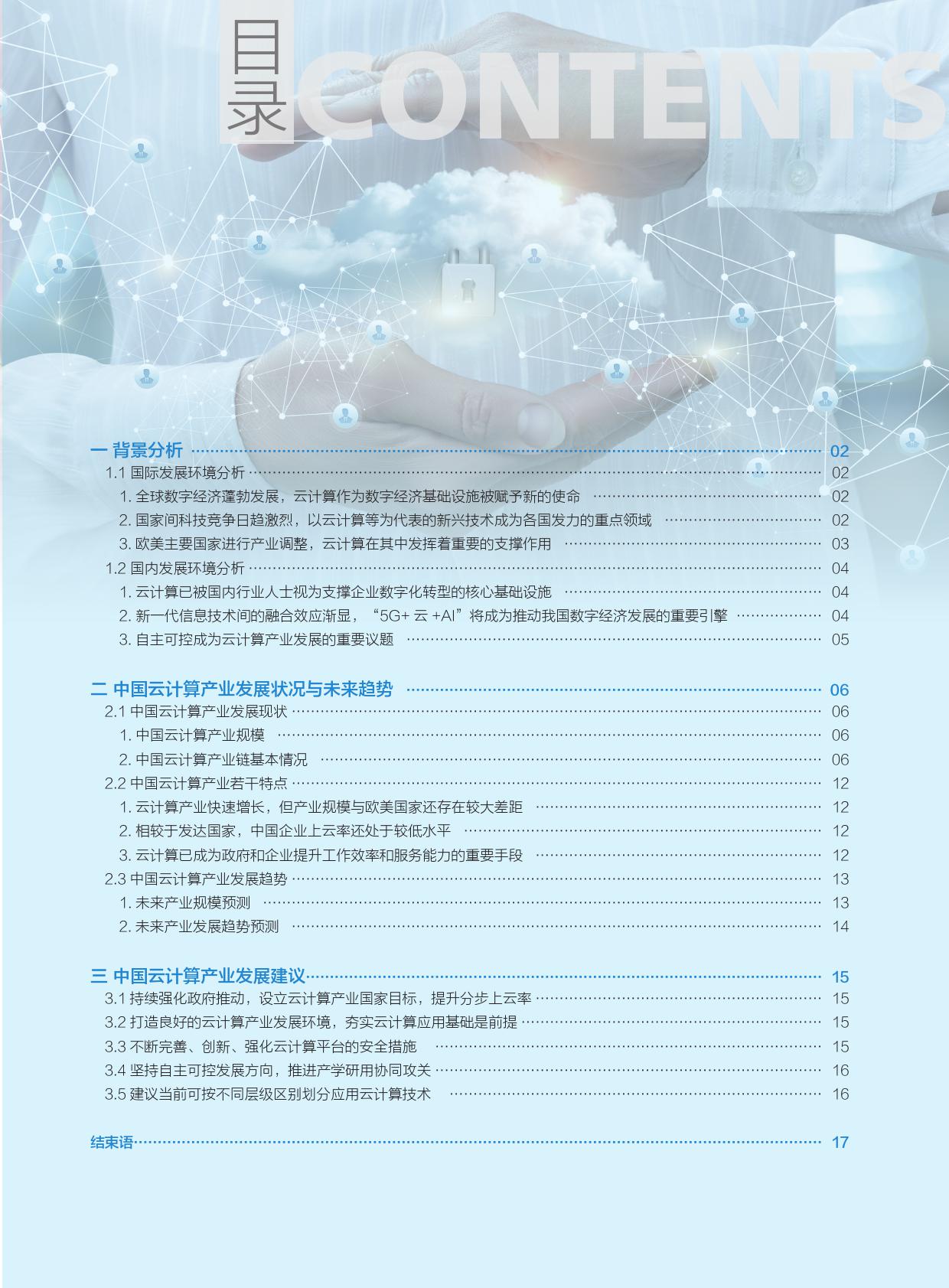 通過調研,國務院發展研究中心得出結論:中國云計算等新興技術產業正在快速增長,對企業轉型、升級、創新有極大的推動作用。同時我們也發現,目前云計算產業規模與歐美國家還存在較大差距,中國企業上云率也處于較低水平,自主可控能力也有待加強。本報告將包含以下三個部分:背景分析(國際與國內)、中國云計算產業發展狀況與未來趨勢、中國云計算產業發展建議。