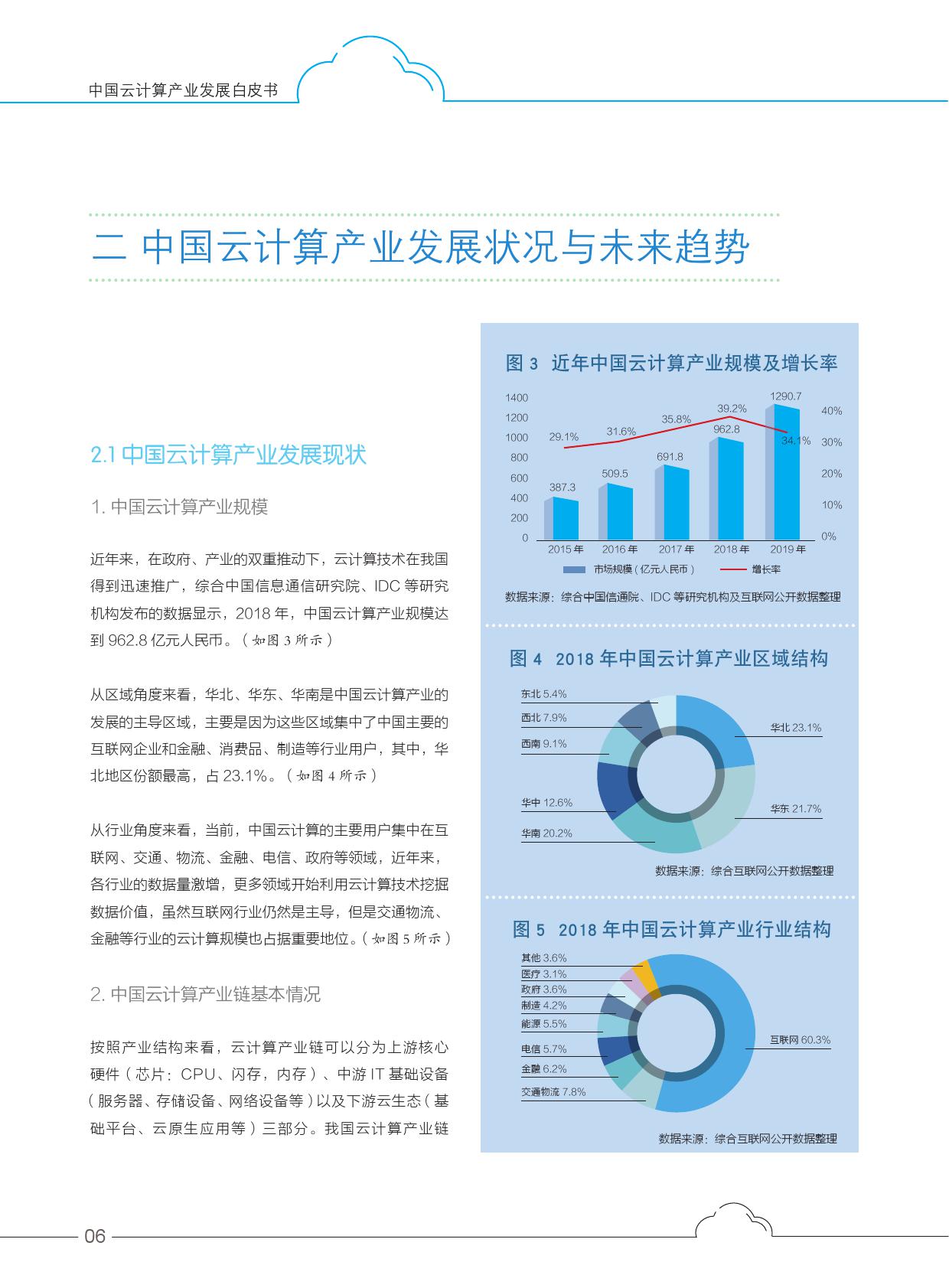近年來,在政府、產業的雙重推動下,云計算技術在我國得到迅速推廣。綜合我們調研和中國信息通信研究院、IDC等研究機構發布的數據顯示,2018年中國云計算產業規模達到962.8億元人民幣。