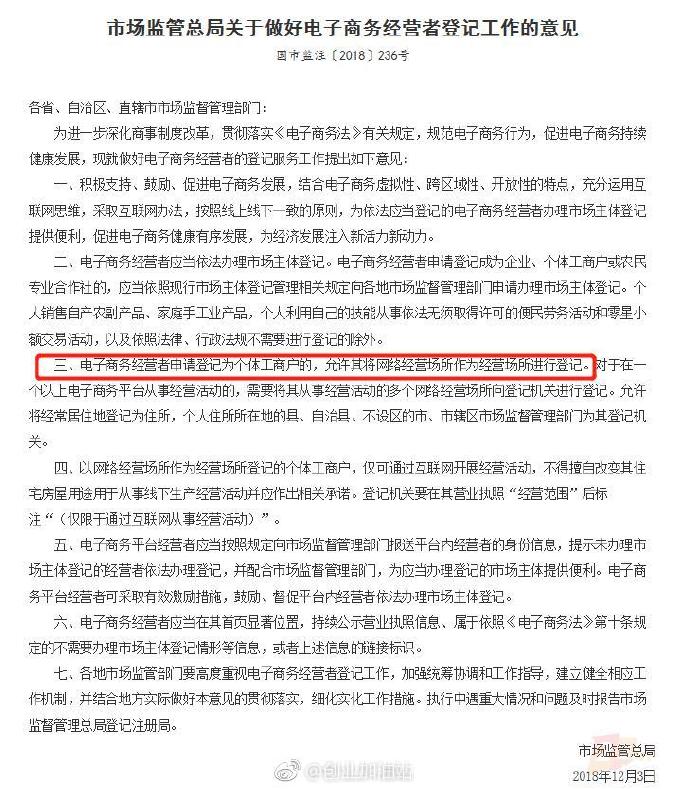 電商利好!網(wǎng)絡(luò)經(jīng)營場所可作為經(jīng)營場所申請登記