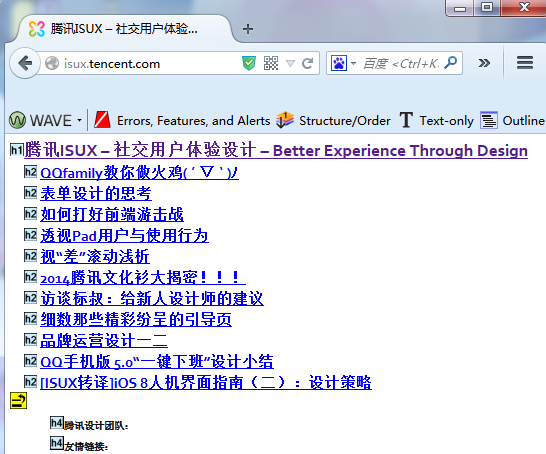 走查網頁上所有的圖片、iframe、object,檢查這些元素是否填寫了適當的alt屬性或者title屬性的值,看看這些值是否可以描述這些元素的內容或者目的;heading元素是否標記了內容,而不僅僅是圖片或者背景圖片。