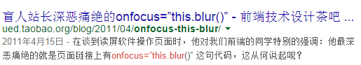 輔助技術一般都是依靠焦點來獲取內容,所以這個事件從本質上就使得輔助內容無法獲得應用了此方法的元素。this.onfocus=this.blur()這個是最傻的一句代碼了。