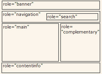 這個是成本最低的方法了,添加的方法就是給相應功能的元素添加role這個屬性,并賦予響應的landmark值。一共有8個值,一般你只能用到6個:banner(banner)、complementary(輔助內容區)、contentinfo(網站信息和版權)、form(表單)、main(主內容區)、navigation(導航區)、search(搜索區)。如果一個表單,他僅僅是提供搜索功能,那么就將role設置為search,而不是form。