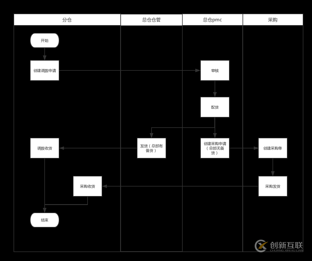 業務流程和操作的支持,將分倉、總倉和采購三個角色,從申請、到審核、配貨,再到發貨和采購申請串起來;