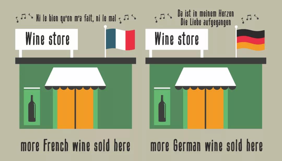 人類的五種感官,視覺、聽覺、嗅覺、味覺和觸覺對于人的行為影響各不相同,甚至優先級也不一樣,Sensory Priming 就是值得這種影響。英國曾經有人做過一項實驗,他們想知道如果在葡萄酒商店播放來自不同國家的音樂會不會給葡萄酒的銷售帶來影響。實際上,實驗結束之后發現,當播放法國音樂的時候,法國的葡萄酒的銷量會更容易超過德國葡萄酒的銷量,反之亦然。而在后續的跟蹤調查當中發現,僅有2%的用戶在后續調研中提到音樂這件事的影響。環境所帶來的影響,對于不同的感官帶來的影響層級深淺各不相同,帶來的影響,有顯性的也有隱性的。