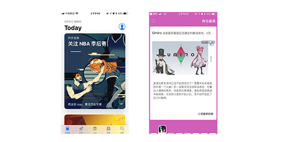 例如:Apple store IOS11 通過多卡片大小的分類將不同緯度的內容有規律的展示出來,提高了版面的利用率的同時,也提升了設計的格調。 最美應用運用卡片的設計方式向用戶傳達了一頁只看一個應用的理念,結合左右滑動的形式,使得應用別出心裁。