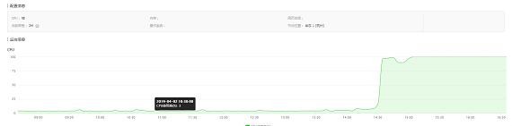 問題二:打開阿里云主機控制管理臺,查看主機信息,發現當天下午2點開始CPU占有率達到100%,之前正常的時候只有3%。