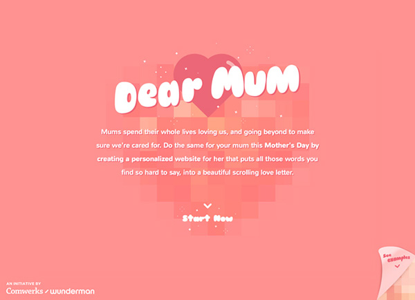 處理柔和背景色的一個常見的趨勢,就是像Dear Mum這樣,使用單色調的配色方案,對一種顏色進行深淺變化。單色調能夠與白色的文字元素產生美妙的視覺對比。