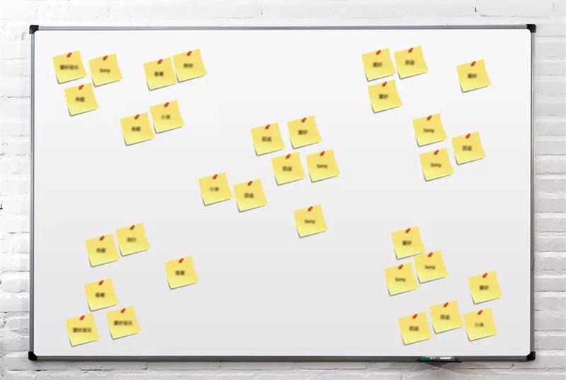 3.補充完畢后,讓所有參與者來到白板前,各自快速講述一下自己寫的便利貼的內容,重點解釋一下其他同事不理解的描述。
