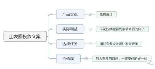 比如公司產(chǎn)品有個(gè)賣點(diǎn)是“免費(fèi)設(shè)計(jì)”,那么這個(gè)賣點(diǎn)能帶來(lái)什么結(jié)果?其中一個(gè)就是“不花錢(qián)就能看到裝修后的樣子”,再往下聯(lián)想客戶想通過(guò)“看到家裝修后的樣子”達(dá)成什么目標(biāo)呢?其中一個(gè)可能是“通過(guò)設(shè)計(jì)讓家變更美”,那為什么讓家變更美會(huì)是一個(gè)對(duì)客戶很重要的目標(biāo)呢?因?yàn)橛脩舻膬r(jià)值觀是“努力奮斗的自己,一定要住好一些”