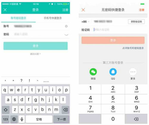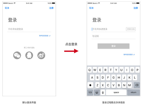 既然做了選擇,就不要三心二意。用戶選擇了一種登錄方式后,其他的方式可以大膽放一邊去了。然而某些設(shè)計(jì)師(或PM)一直把用戶當(dāng)成是購(gòu)物中的選擇困難癥女性,“登錄方式要切換方便,萬(wàn)一用戶要更換。。。萬(wàn)一用戶選錯(cuò)怎么辦?”。也許有5%的用戶會(huì)選錯(cuò),為此就要降低剩下95%的用戶的體驗(yàn)?假如遵循好上述的兩個(gè)觀點(diǎn),所謂的萬(wàn)一會(huì)更加少。美團(tuán)在這一點(diǎn)做的比較好,調(diào)起鍵盤輸入并隱去第三方賬號(hào)登錄。