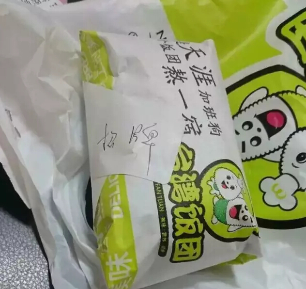 "同是天涯加班狗,吃個飯團熬一宿。"