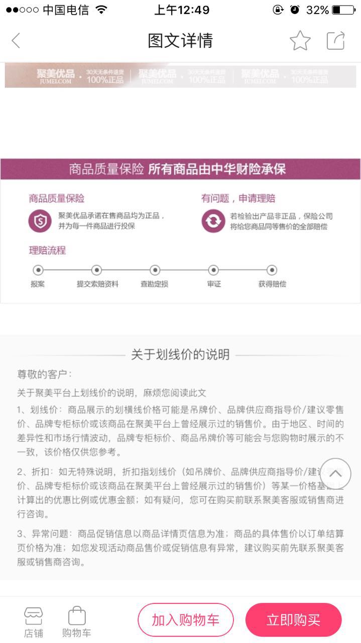 平臺承諾包括貨源承諾、售后承諾、質檢報告等。表現形式也多種,例如聚美優品做的商品“中華財險承保”,以及保稅區發貨、海外發貨的說明;網易考拉海溝通過一段官方視頻說明商品正品來源。形式多樣,這些信息,總的來說,可以簡單地通過突出顯示關鍵字來展示,因為太豐富的內容容易喧賓奪主。在起到很強的心理暗示作用同時,減少占據商詳頁的承載負擔和用戶的閱讀負擔。