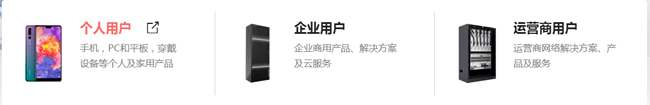 用戶分類:華為官網主要為三類人服務,分別是個人用戶、企業采購、經銷商,所以他在這里顯著位置列出了這三類,讓進來看官網網站的人能第一時間找到自己想找到的內容頁。這個位置我們一般建設這個位置放企業的3-5款主張產品,讓尋求者第一時間找到其最感興趣的網站頁面.