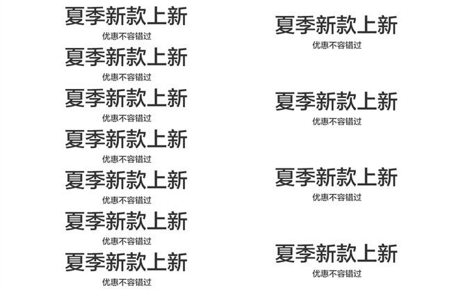 同樣是重復的形式,左側(cè)完全沒有給人一種有層次、有次序的感覺,在用戶眼中,這只不過是一團信息;而右側(cè)通過改變留白的方式充分的體現(xiàn)出視覺上的層級關(guān)系,每一個獨立存在的標題或者欄目之間都應(yīng)該用留白的方式體現(xiàn),這種留白要遵循的原則是:標題與文案的留白要小于欄目與欄目之間且大于說明性文字信息之間,只要這樣才能真正意義上的將層次拉開。