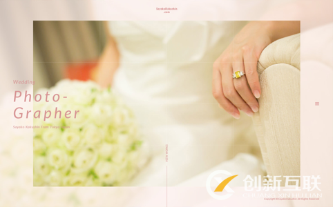 下面網站是一家婚慶公司的宣傳網站,網站背景采用了將新娘手捧鮮花的照片 設置透明度模糊展示