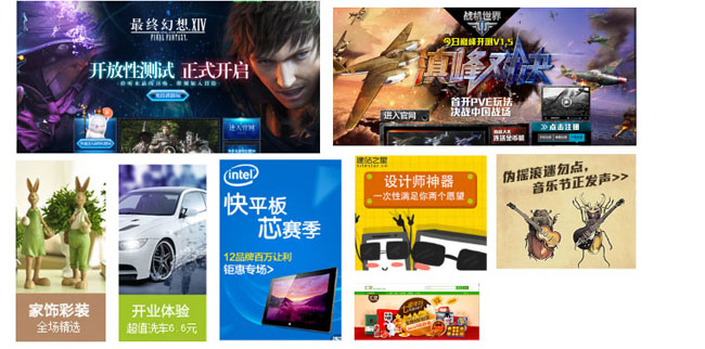 第一種就是大家經常在各種大大小小的網站都能看到的廣告banner或者焦點圖,她們有大有小可長可短,但是他們共同的作用就是通過各種方式引導你去點擊。