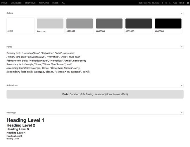 對(duì)于前端樣式庫(kù)的搭建,作者推薦了一個(gè)前端工具“Pattern Lab”,它也保持著原子設(shè)計(jì)理論的工作原理,并且還有可以將動(dòng)態(tài)數(shù)據(jù)添加進(jìn)樣式結(jié)構(gòu)中并展示樣式變化,如選中或禁用的tabs;同時(shí)支持響應(yīng)式的設(shè)計(jì),可以查看整個(gè)分辨率內(nèi)的樣式變化;還可以展示樣式相關(guān)的底層代碼;提供樣式描述和注釋;提供樣式的上下文信息,如構(gòu)成元素和使用場(chǎng)景。