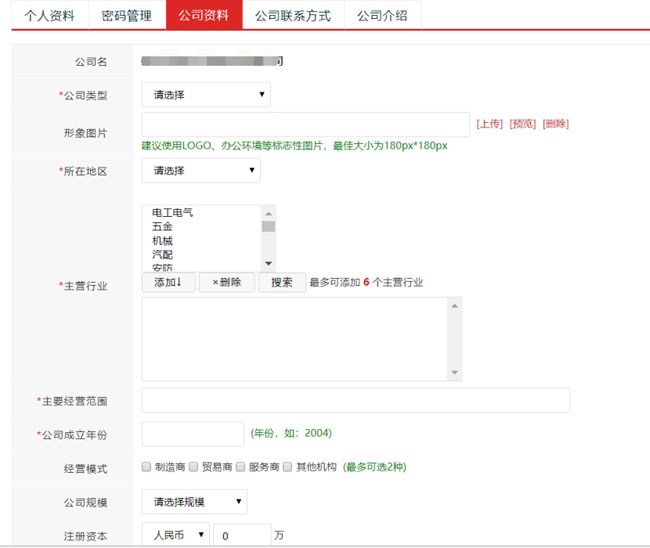 個人會員,不需要填寫公司名稱,只要會員名稱與密碼即可.但是個人會員,注冊后,是無法開通免費網站的.請注意!