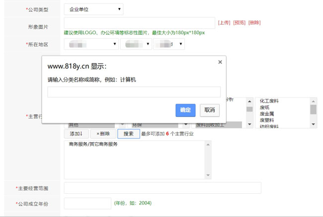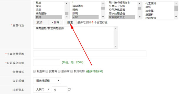 主營行業,如果找不到,可以選擇搜索,輸入自己的行業,即可搜索出相關行業,如果搜索不出,可以換關鍵詞來進行搜索.