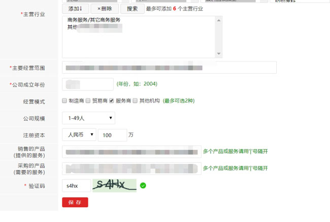 9. 填寫完成后,輸入驗證碼,點擊保存.