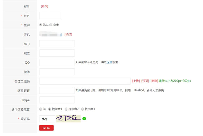 10. 點擊保存,會跳到個人信息這里,我們現在填寫的公司企業信息與個人信息,都會展現在我們的網站上面.這些都是基礎資料,所有務必要填寫正確.