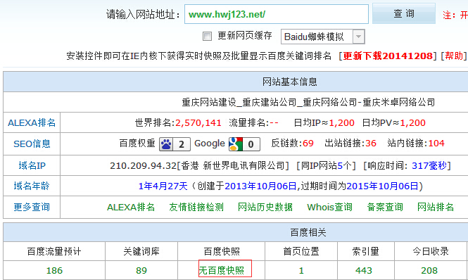 今天下午5點(diǎn)多在站長工具查詢重慶網(wǎng)絡(luò)推廣公司網(wǎng)站權(quán)重的時(shí)候發(fā)現(xiàn),百度快照居然沒有了時(shí)間,接著查看排名,排名沒什么變化,也沒有掉。順著快照鏈接點(diǎn)到了百度,發(fā)現(xiàn)確實(shí)沒有快照時(shí)間了,于是聯(lián)想到前些天,百度取消快照時(shí)間的言論,看來是真的了。