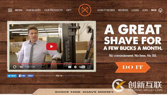 這里沒有任何解釋。視頻顯然是一個講故事的好選擇,它可以嵌入在任何地方。Dollar Shave Club在其登陸頁面的人的視頻,也可以通過其社交媒體平臺。顯然,它的作品超過2200萬的意見和計數。