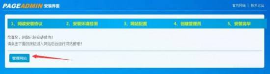 上傳網(wǎng)站解壓后,輸入域名,就可以進(jìn)行cms的安裝界面,下面以PageAdmin為例,解壓后輸入域名,呈現(xiàn)出安裝提示界面: