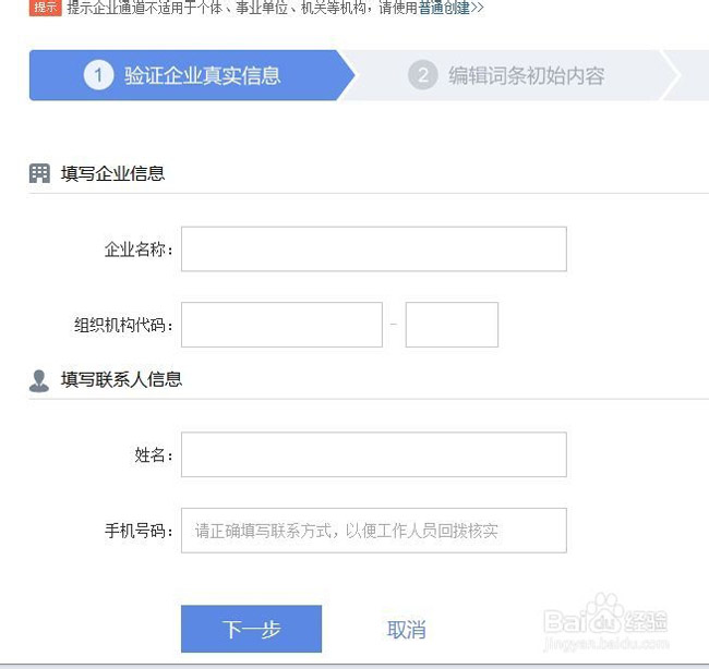 填整完整的公司的信息-下一步;
